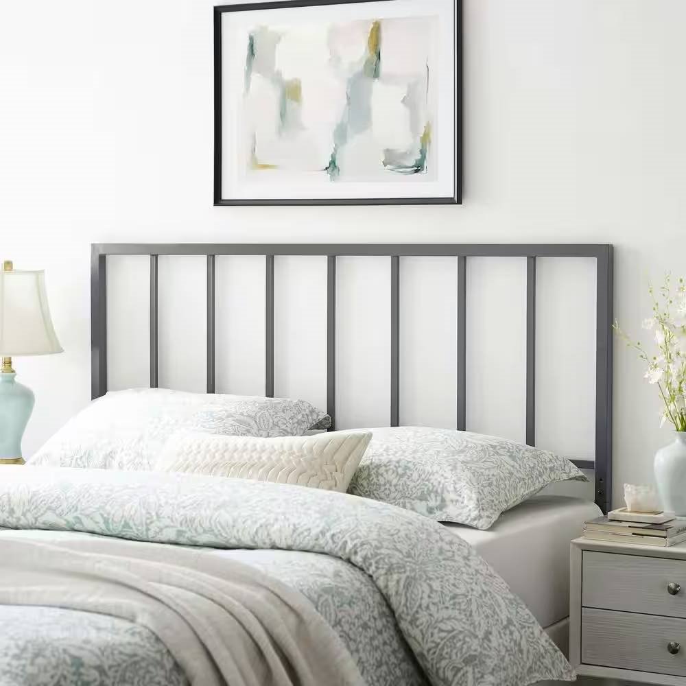 Elevate the look and feel of a teenager's bedroom or guest bedroom with the Full size Modern Classic Grey Metal Headboard. Featuring a streamlined silhouette with squared lines and spindle detail, this Full size Modern Classic Grey Metal Headboard is a timeless design with a contemporary feel. Durable iron metal with a powder coated finish makes up the frame of this headboard for a sturdy construction that lasts. Create an aesthetic backdrop for all kinds of bedding styles with this modern spindle headboard suitable for most full bed frames. Assembly required.