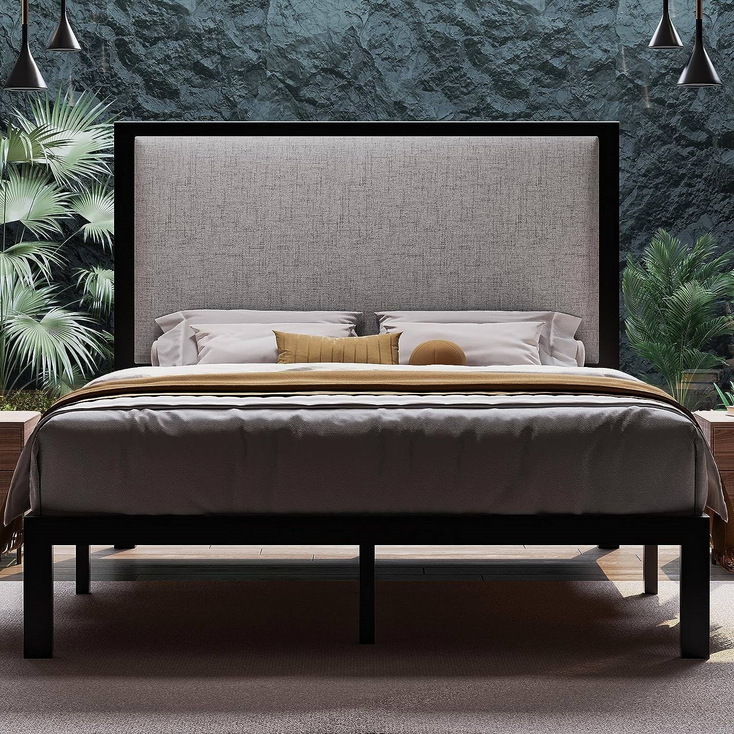 Full size Black Metal Platform Bed Frame with Grey Linen Upholstered Headboard Full size Black Metal Platform Bed Frame with Grey Linen Upholstered Headboard Full size Black Metal Platform Bed Frame with Grey Linen Upholstered Headboard Full size Black Metal Platform Bed Frame with Grey Linen Upholstered Headboard Full size Black Metal Platform Bed Frame with Grey Linen Upholstered Headboard