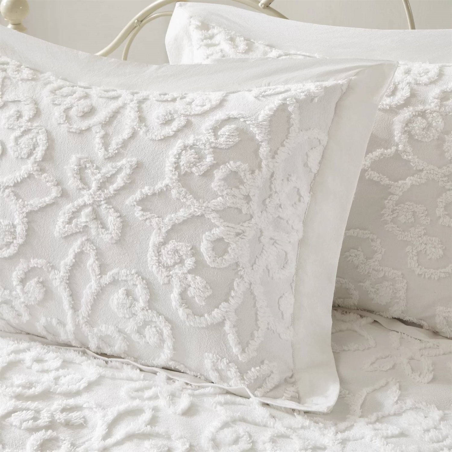 • 5-Piece French Country White Chenille Medallion Cotton Daybed Cover Bedding Set