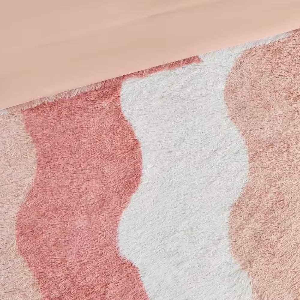 This Twin/Twin XL Pink Blush White Reversible Soft Sherpa Faux Fur 2-PC Comforter Set showcases a unique, tonal wave striped pattern for an ombre look, and reverses to a soft blush color. This cozy comforter adds a fun and modern update to your bedroom, while coordinating shams (1 in Twin/Twin XL) complete the bedding set. The hypoallergenic polyester comforter filling contains no allergens and is treated to be dustproof. Sham set will vary in ombre colors. This machine washable comforter set is also Fibr-Tec certified, featuring an antimicrobial treatment on the reverse, which keeps the bedding fresher longer.