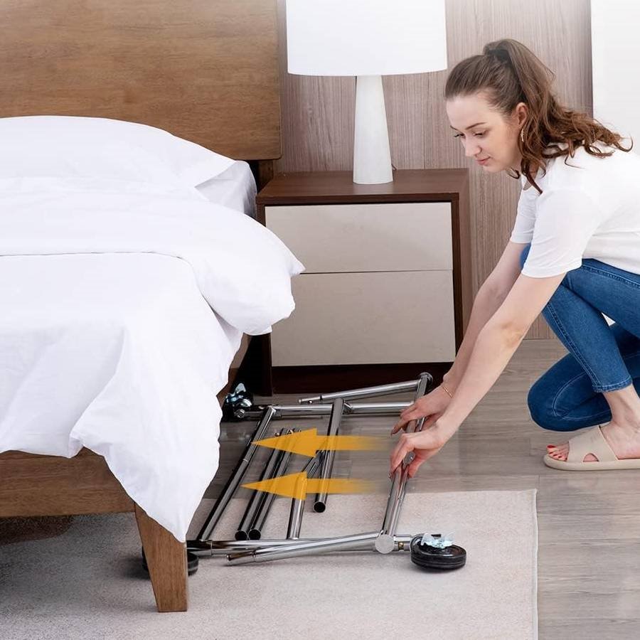 This Heavy Duty Metal Clothing Garment Rack with Lockable Wheels - 250 lbs. Capacity is made of high quality metal with durable chrome coating to enhance protection against water, rust, corrosion & scratch. Our garment rack is made of heavy duty steel with chrome finish. The thickness of our pole is 1.5mm, which makes this clothing rack much thicker and sturdier. The maximum load capacity is 250 lbs, strong enough for your storage needs. Horizontal Rod can be extended from 51'' to 75'' and Vertical Height can be adjusted from 66'' to 71''. The two lower bottom bars can be used for extra storage, such as shoes, storage box, etc. This coat rack is easy to set up and disassemble with tools provided. Ideal for a dressing room, attic, storage room, or even retail shop. When you no longer need it and want to free up floor space, you can fold and store it in a closet or under your bed. Our clothes rack comes with four removable rolling solid rubber casters (2 with locking brake) . Easy to move even fully loaded with clothes. Sturdy and reliable for commercial use such as shows, mobile clothing boutique. 4 omnidirectional rubber wheels for long lasting use. Won’t hurt floor and can move smoothly on carpet.