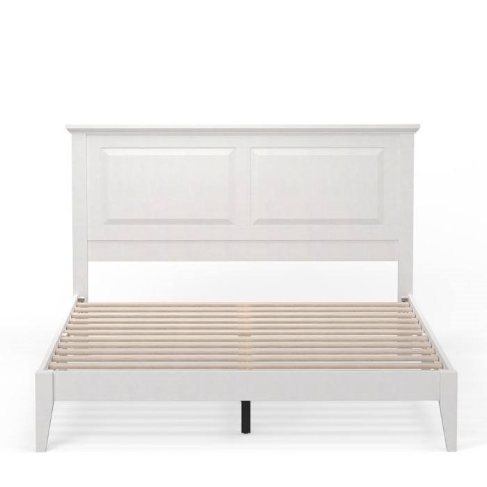 Queen Traditional Solid Oak Wooden Platform Bed Frame with Headboard in White