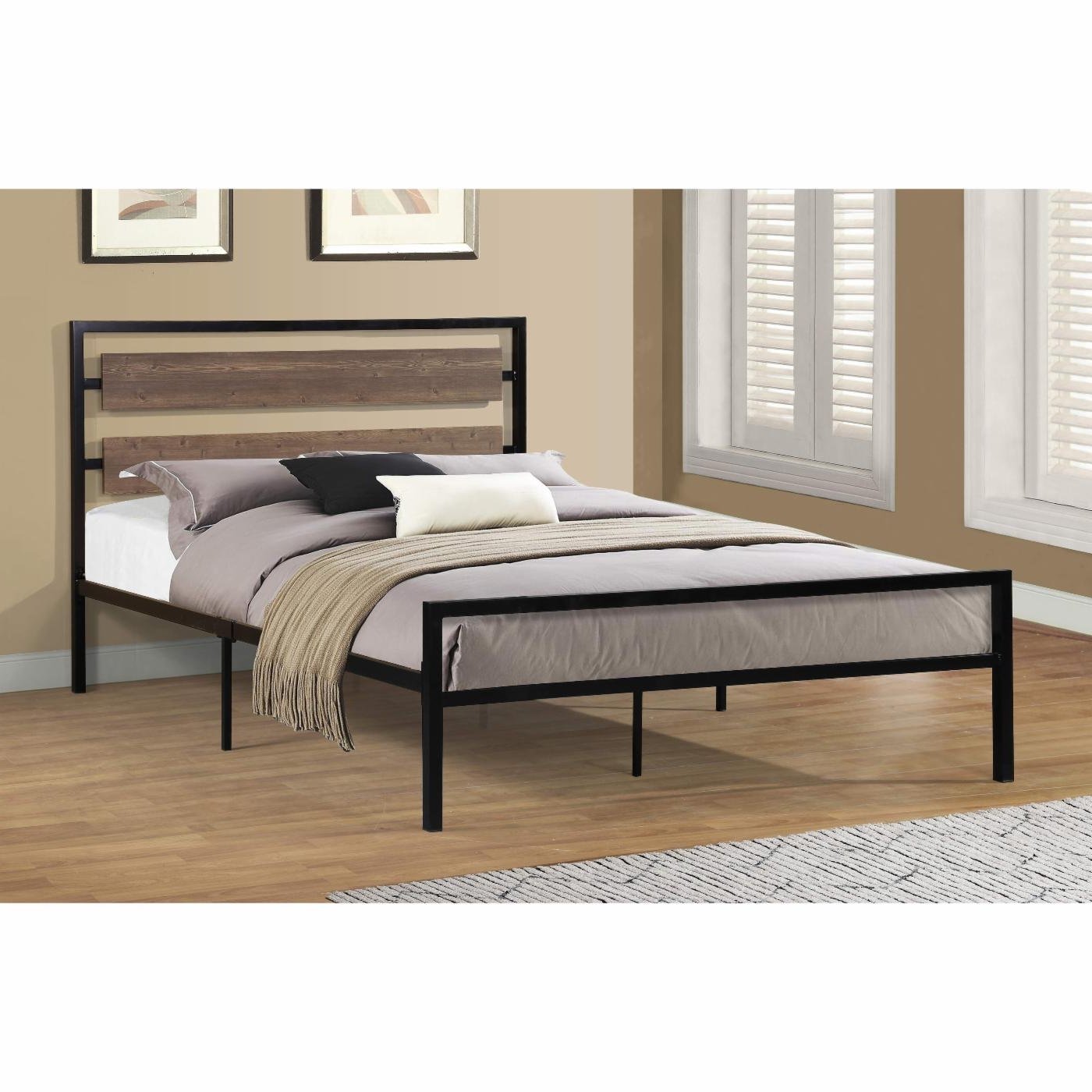 Full Size Industrial Metal Platform Bed Frame with Wood Panel Headboard
