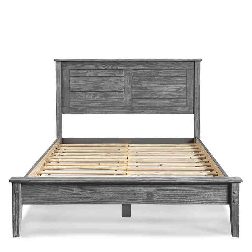 Twin Size Coastal Dorm Farmhouse Solid Pine Wood Platform Bed in Rustic Grey