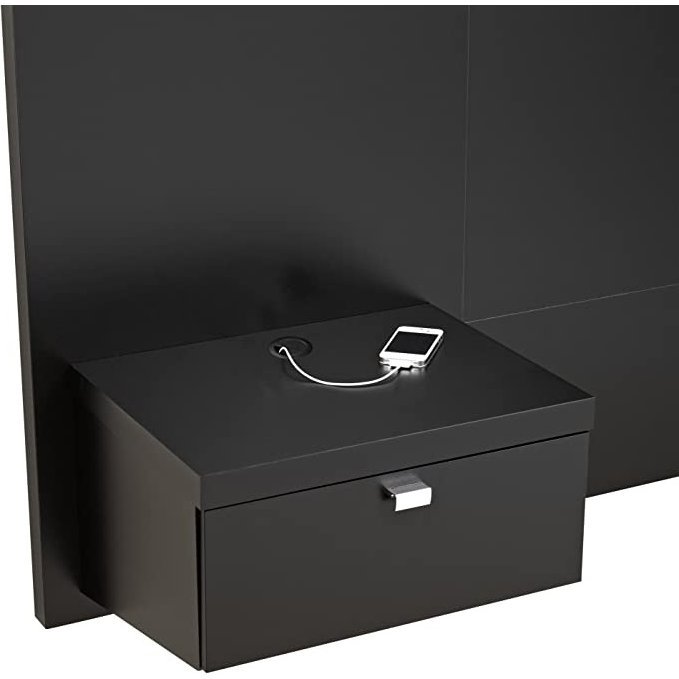 King size Modern Wall Mounted Floating Headboard with Nightstands in Black