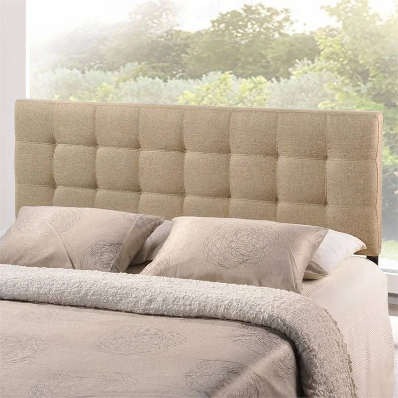 Home > Queen size Modern Beige Tan Taupe Fabric Tufted Upholstered Headboard