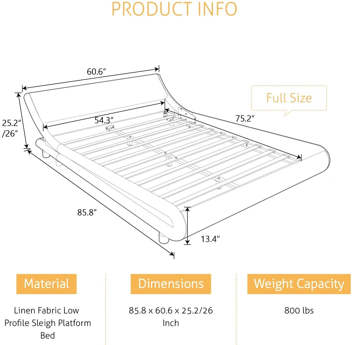Hate carrying heavy boxes upstairs? We hate it too! So we make the whole set bed in one box only for easy moving around. This Full Modern Black Faux Leather Upholstered Platform Bed Frame with Headboard is safer for little kids to climb around and no room for pets hiding below. Let's enjoy all the sweet moments only in bed! Great quality leather keeps no fur or hair,best for pets keepers. FRESH FOR YOUR HEALTH. No chemical smell to harm your health. SKIN FRIENDLY. Skin friendly material that feels soft every night.