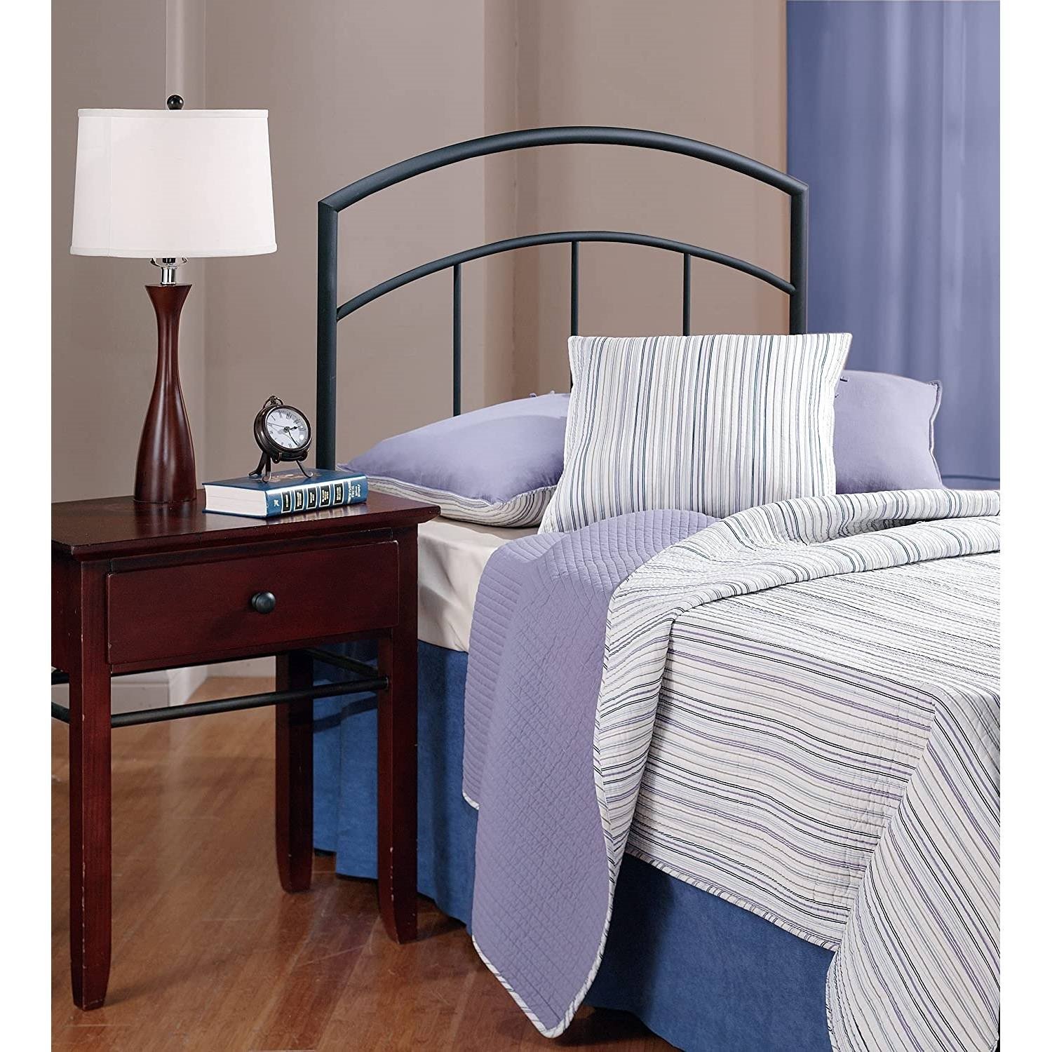 Simplicity at its finest. The Twin size Transitional Headboard in Textured Black Metal Finish combines gentle arches with straight lines and cleverly uses negative space to create a clean silhouette with a strong presence. Its understated style and Textured Black finish ensure this twin-size metal headboard fits nicely with any décor. Includes headboard only. Footboard and bed frame sold separately. Box spring and mattress not included. Assembly required.