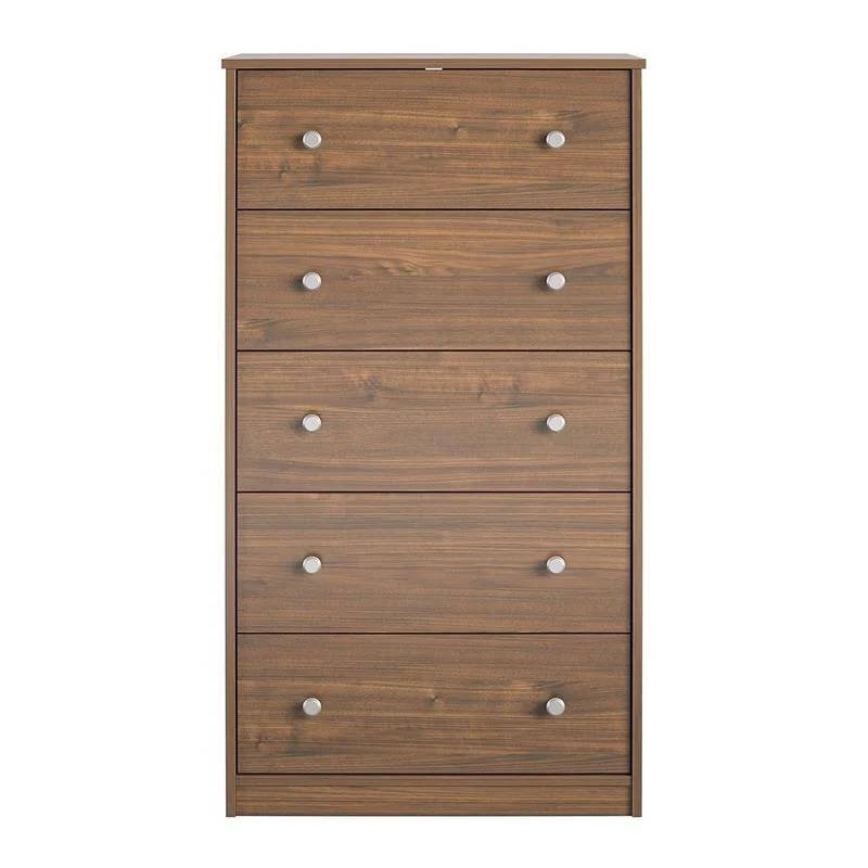 Modern 5-Drawer Bedroom Chest of Drawers in Rustic Walnut Wood Finish